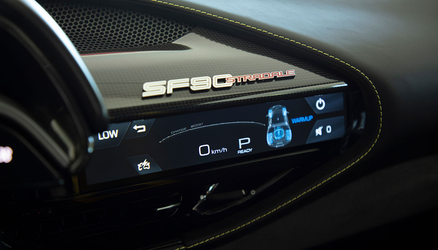 針對 SF90 Stradale(以及 SF90 Spider),Assetto Fiorano 套件導入多項深度升級,包括整體車重減輕 40 公斤、懸吊系統重新設計,並將原本的主動式阻尼器更換為源自 Ferrari GT 賽車經驗的鋁製 Multimatic 被動式避震器,專為滿足賽道駕駛條件而精心調校。