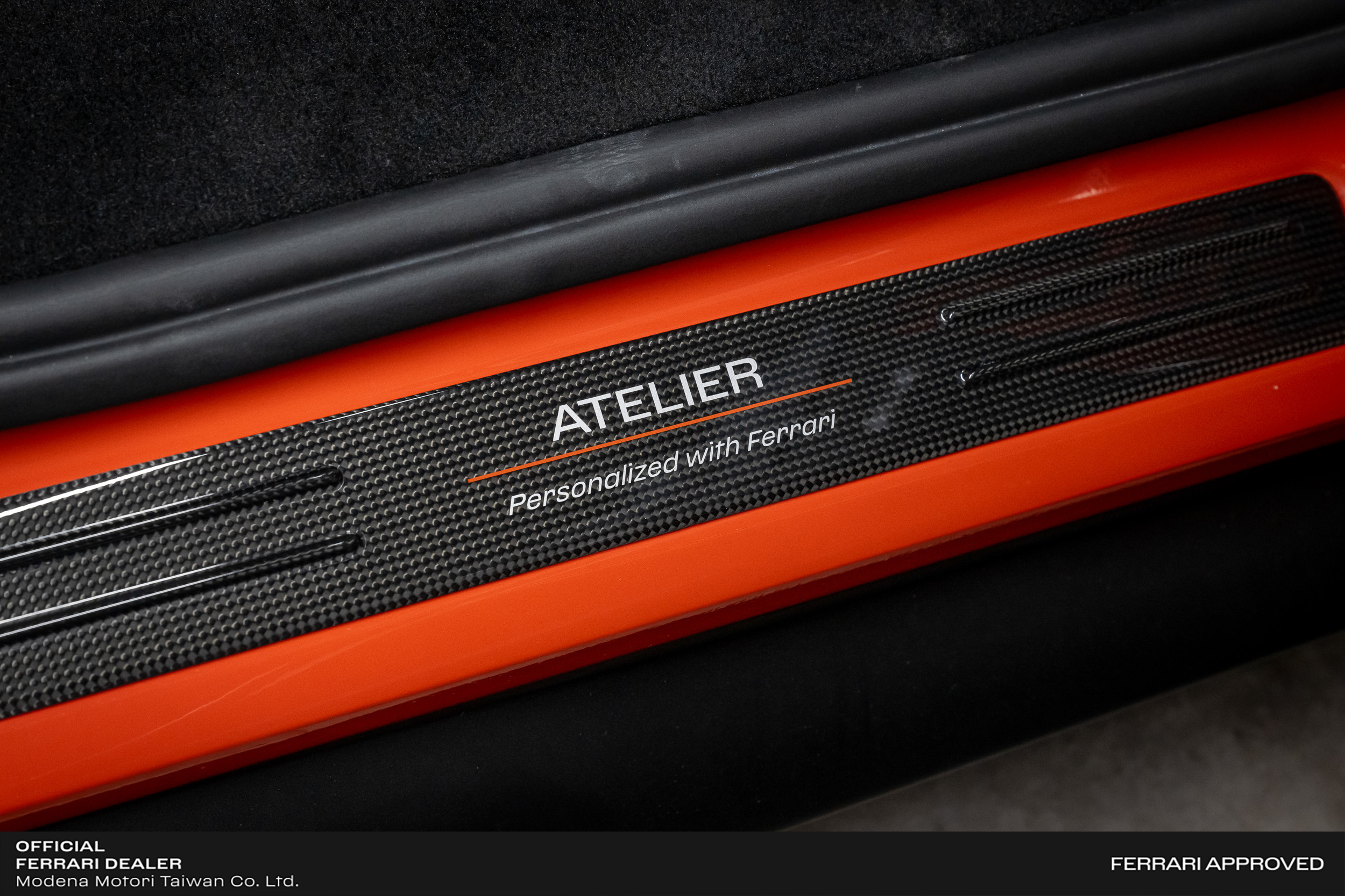 - 碳纖維迎賓飾板指定字樣 (ATELIER Persnalized with Ferrari)
